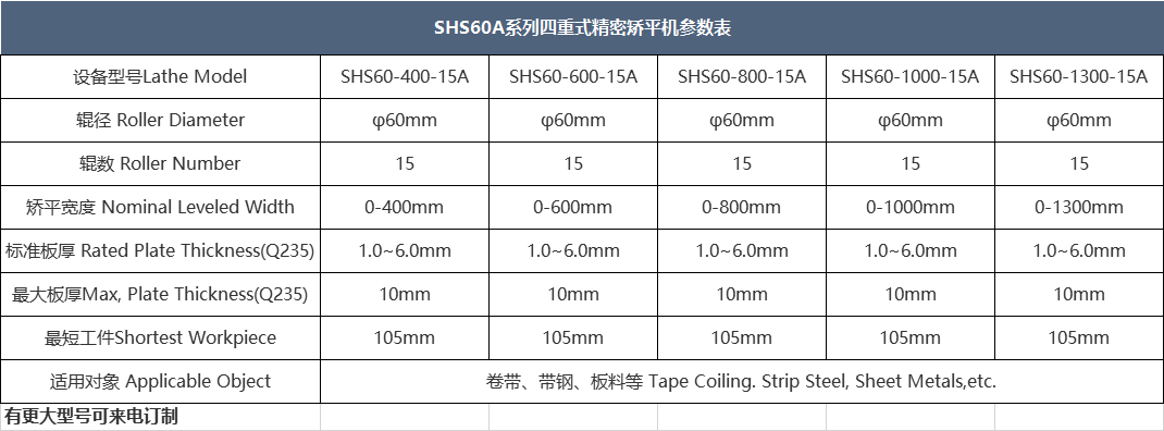 四/六重式精密整平機(jī)是通過整平機(jī)多組滾筒滾壓式矯平,從而達(dá)到平整效果。四/六重式高精密整平機(jī)采用上、下排矯平工作輥與支撐軸承(輪)之間加裝支撐輥,構(gòu)成上下各二/三重共四/六重的組輥結(jié)構(gòu);矯平輥受力分布均勻,結(jié)構(gòu)剛性好,工作輥撓曲變形小,矯平精度高,行程諧波衰減性矯直,從根本上解決普通矯平常見的矯不平、易產(chǎn)生輥印壓痕、工件塌角、鐮刀彎等問題,提高板材的矯正精度,適用范圍廣,材料表面不會(huì)留下輥壓痕跡,矯正精度高。